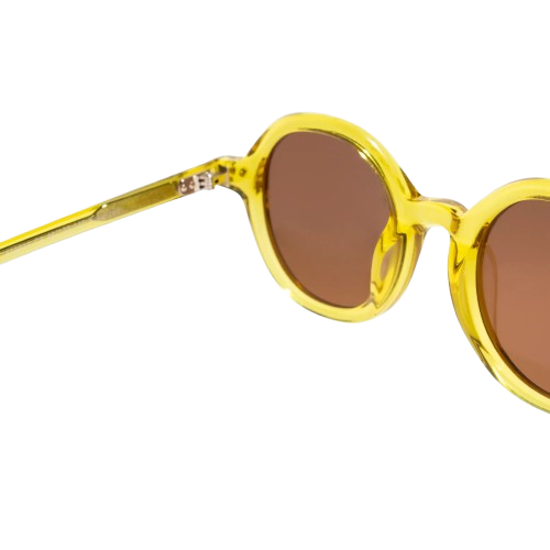 TheLuxily Round Yellow Frame Sunglasses with Brown
